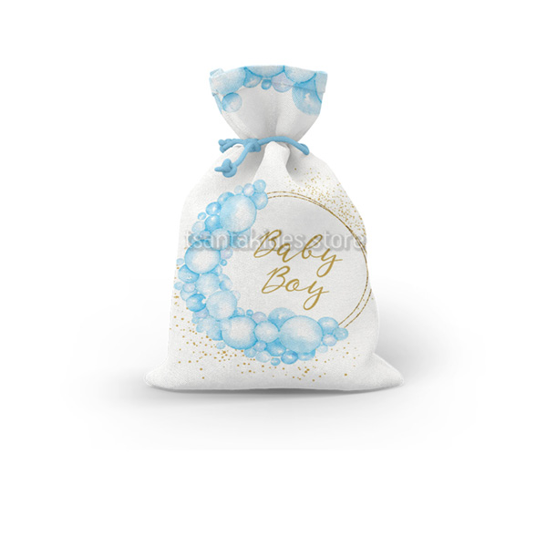 Mπομπονιέρα σε Υφασμάτινο πουγκί εκτυπωμένο με θέμα το Balloon Circle Αγόρι.