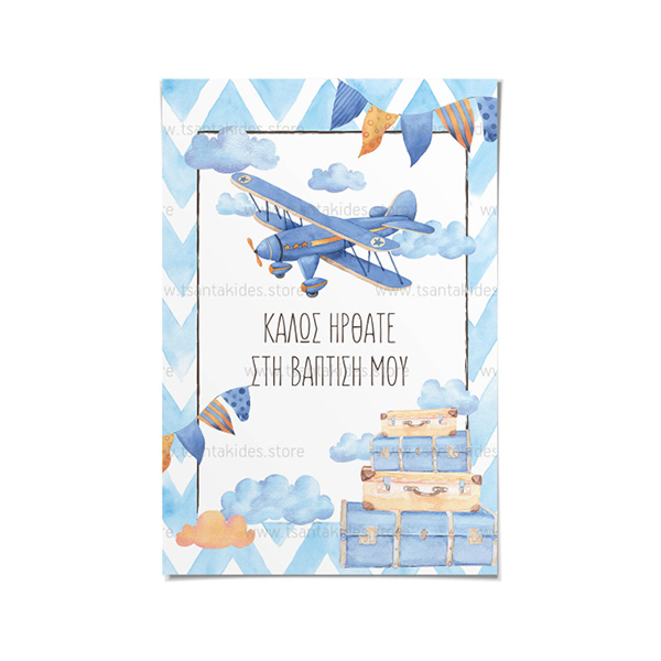 Μπλε Αεροπλανάκι Βάπτιση Αγόρι – Καρτολίνο για Καβαλέτο