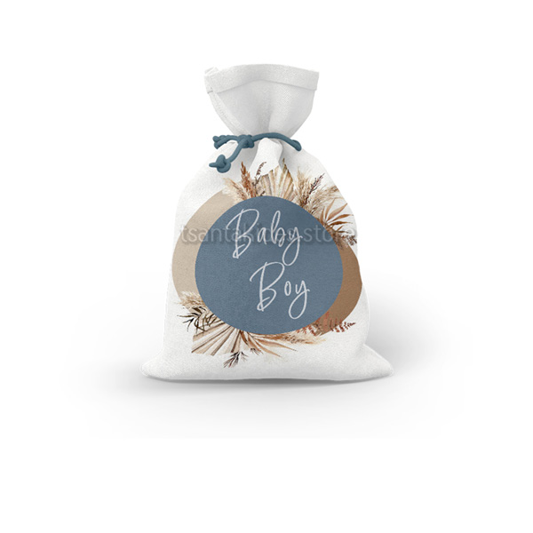 Mπομπονιέρα σε Υφασμάτινο πουγκί εκτυπωμένο με θέμα το Boho Baby Boy.