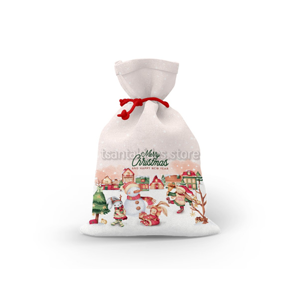 Mπομπονιέρα σε Υφασμάτινο πουγκί με Θεματική Christmas Village.