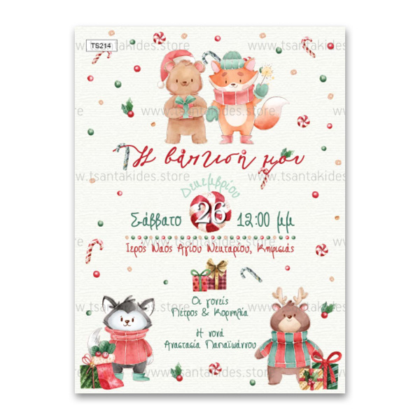 Χριστουγεννιάτικα Ζωάκια Προσκλητήριο Βάπτισης Χριστουγέννων
