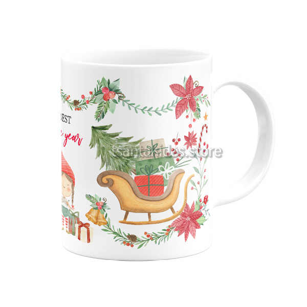 Χριστουγεννιάτικο Χωριό Κεραμική Κούπα για Βάπτιση Αγόρι