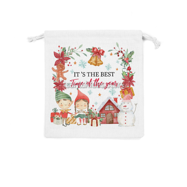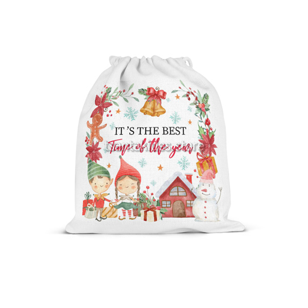 Υφασμάτινο πουγκί δώρου εκτυπωμένο με θέμα Χριστουγεννιάτικο Χωριό.