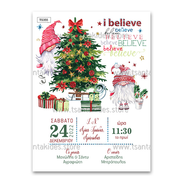 Χριστουγεννιάτικο Προσκλητήριο Βάπτισης Santa Claus