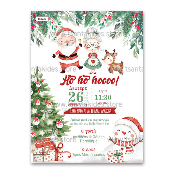 Χριστουγεννιάτικο Προσκλητήριο Βάπτισης Santa Ho hoho