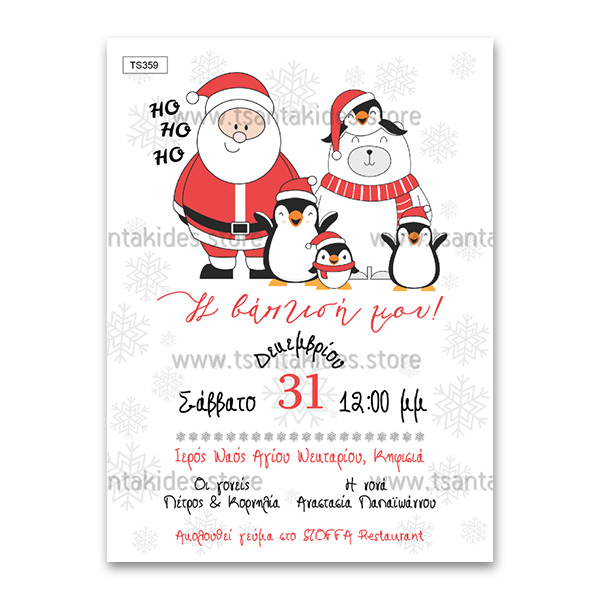Χριστουγεννιάτικο Προσκλητήριο Βάπτισης Snow Santa