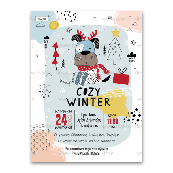Cozy Winter Προσκλητήριο Βάπτισης Χριστουγέννων