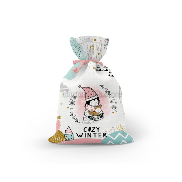 Mπομπονιέρα σε Υφασμάτινο πουγκί με Θεματική Cozy Winter.