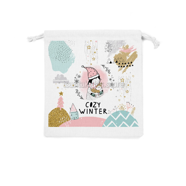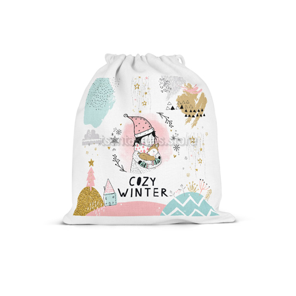 Υφασμάτινο πουγκί δώρου εκτυπωμένο με θέμα Cozy Winter.
