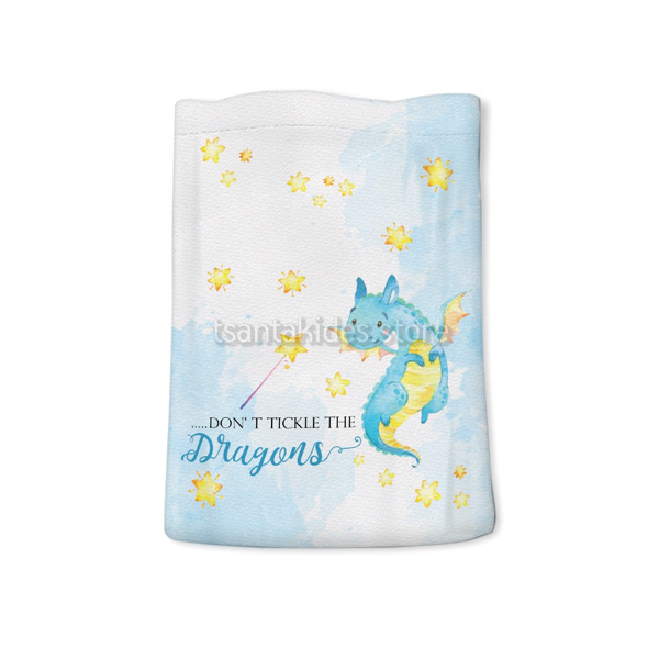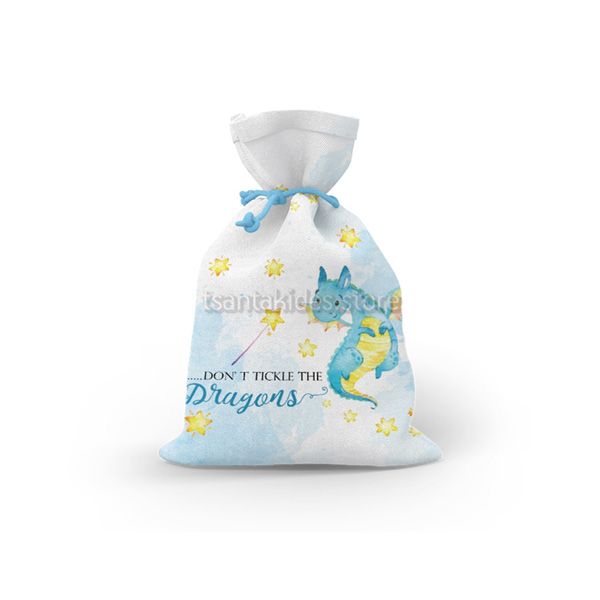 Mπομπονιέρα σε υφασμάτινο πουγκί με θεματική Μονόκερος και Δράκος.