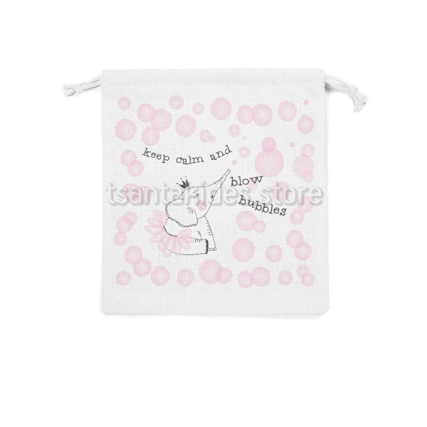 Υφασμάτινο πουγκί δώρου εκτυπωμένο με θέμα το Ελεφαντάκι Κορίτσι.