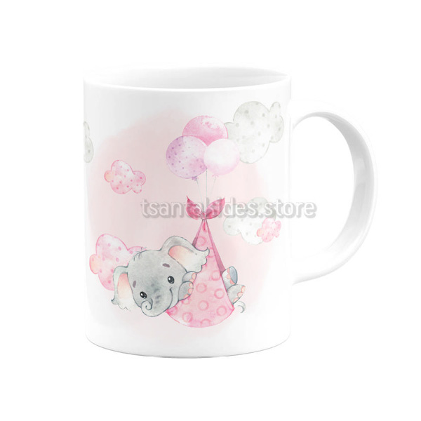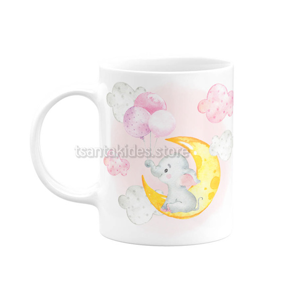 Ελεφαντάκι στο Φεγγάρι Κεραμική Κούπα για Βάπτιση Κορίτσι