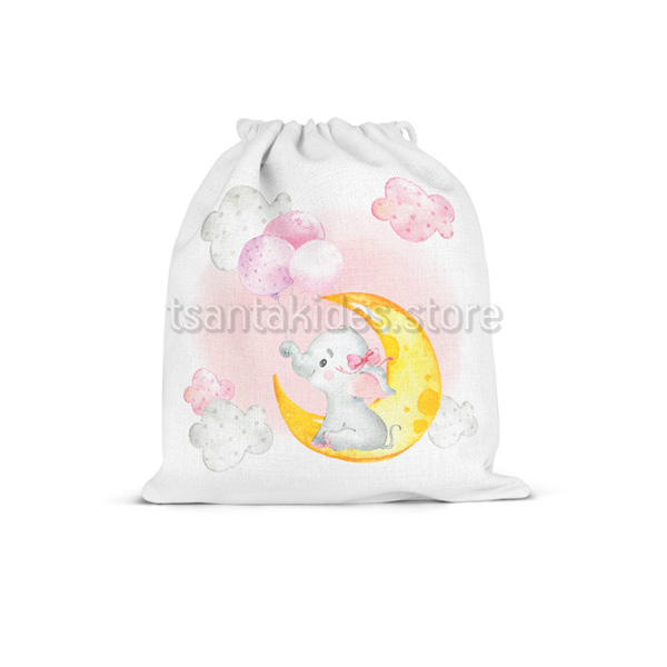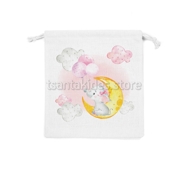 Ελεφαντάκι στο Φεγγάρι Βάπτιση Κορίτσι – Πουγκί Υφασμάτινο με Κορδόνι