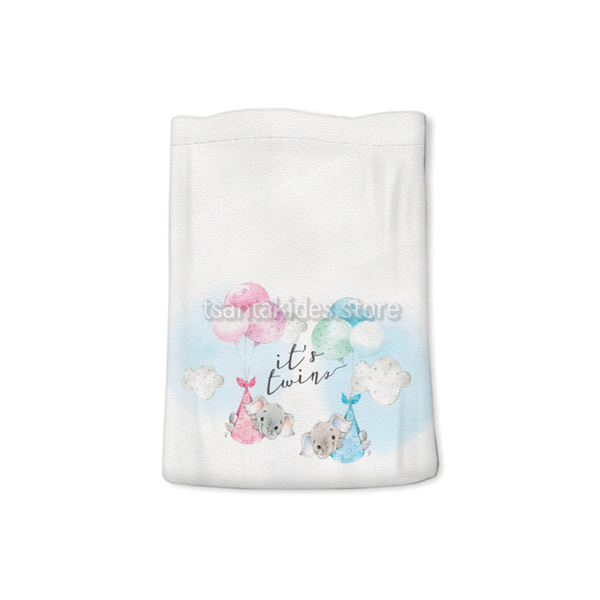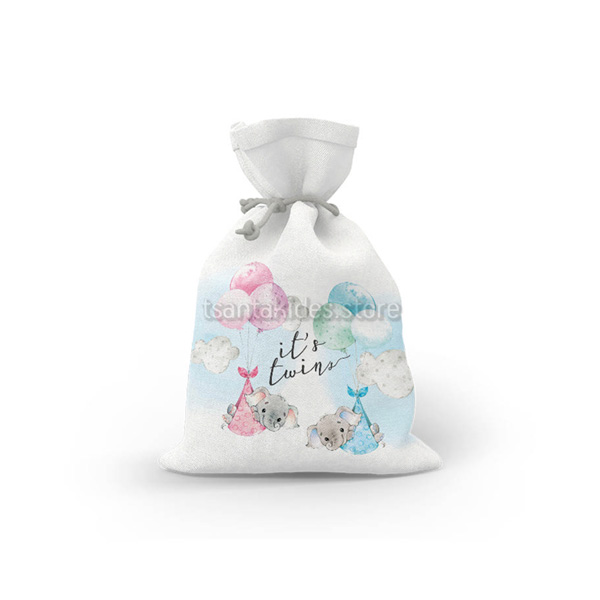 Mπομπονιέρα σε Υφασμάτινο πουγκί με Θεματική το Ελεφαντάκια στα Σύννεφα.