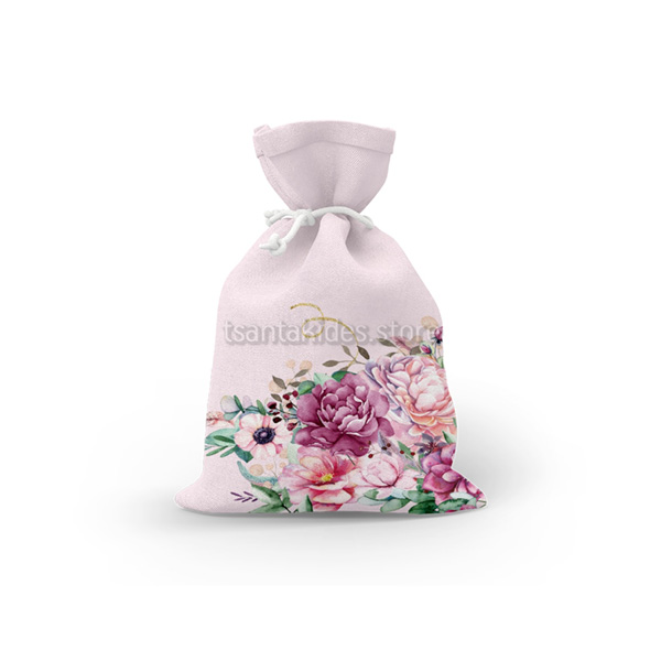 Mπομπονιέρα σε υφασμάτινο πουγκί με θέμα υπέροχο Floral.