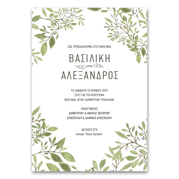 Γαμήλια Πρόσκληση Κλασική Οικονομική με Φύλλα