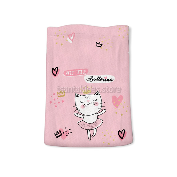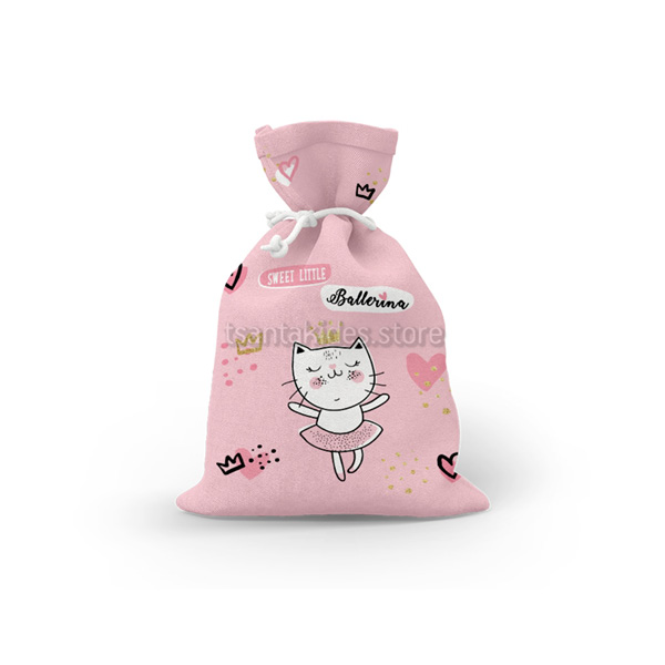Mπομπονιέρα σε υφασμάτινο πουγκί με θεματική τη Γατούλα.