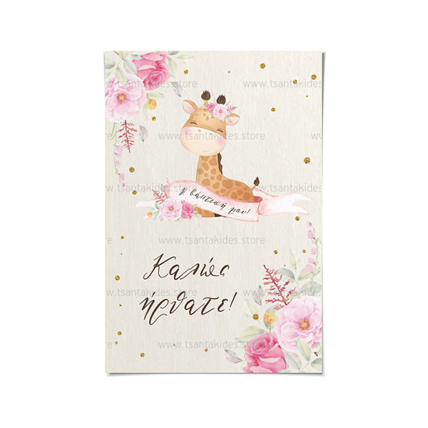 Γλυκιά Καμηλοπάρδαλη Βάπτιση Κορίτσι – Καρτολίνο για καβαλέτο