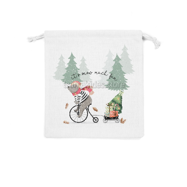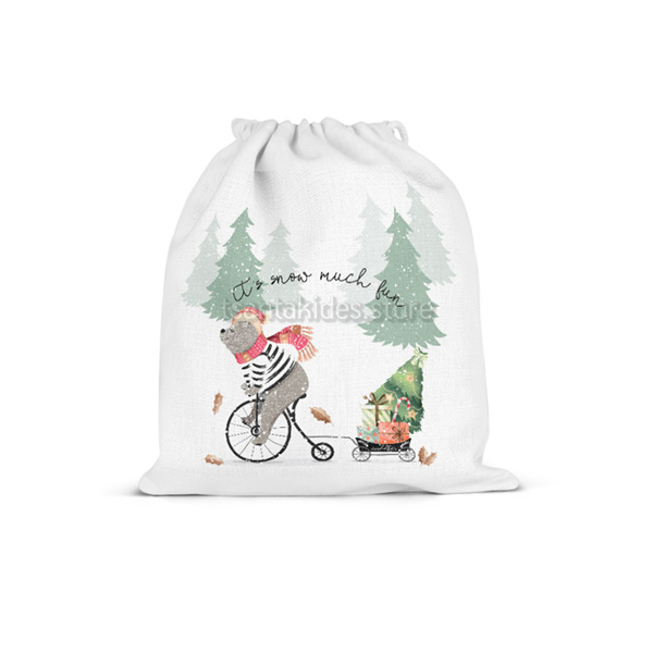 Υφασμάτινο πουγκί δώρου εκτυπωμένο με θέμα It’s Snow Much Fun.