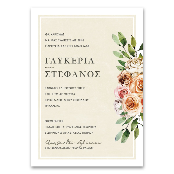 Κάθετη Κλασική Πρόσκληση Γάμου με Τριαντάφυλλα