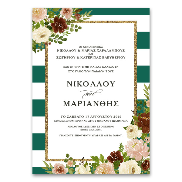 Κάθετη Modern Πρόσκληση Γάμου με Άνθη