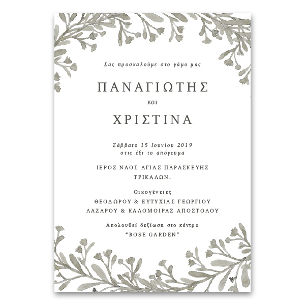 Κλασική Κάθετη Πρόσκληση με Κλαδιά και Φύλλα