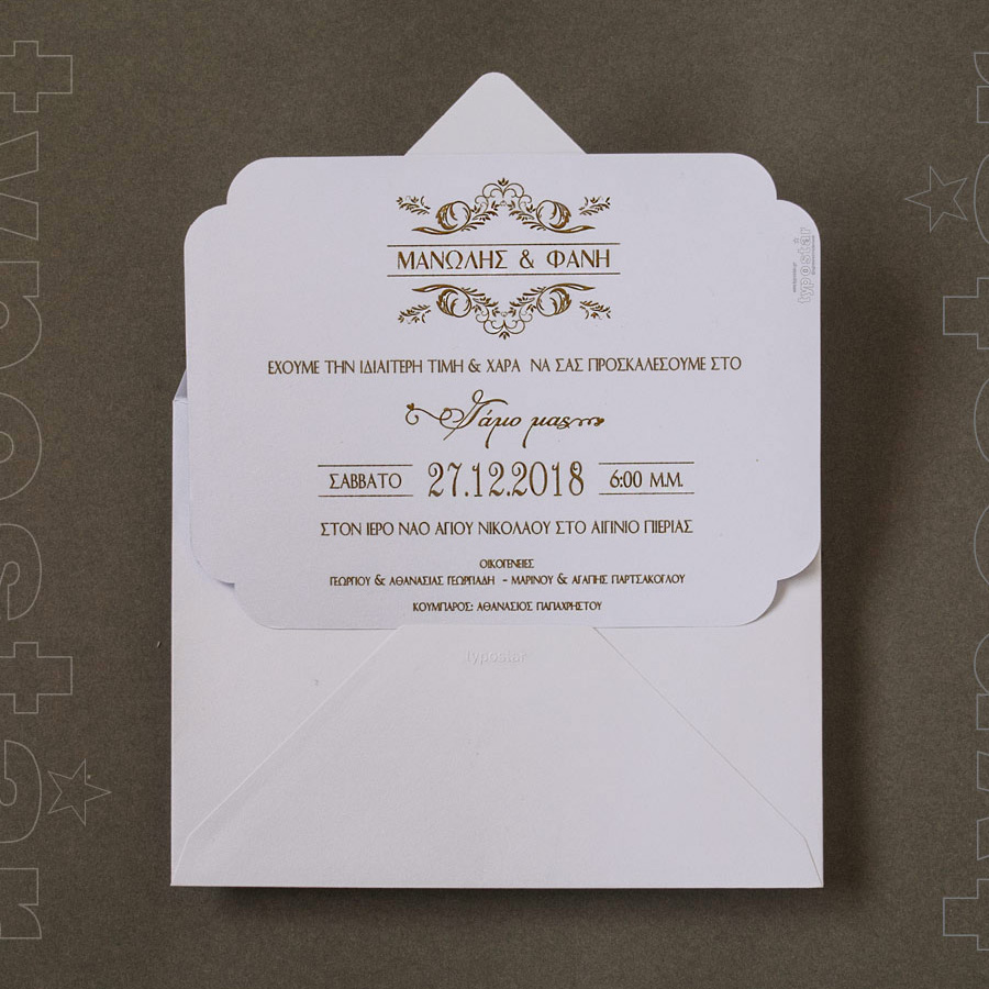 Κλασική πρόσκληση γάμου. Τυπώνεται σε χαρτί πολυτελείας. Διάσταση φακέλου 14.5 x 21.