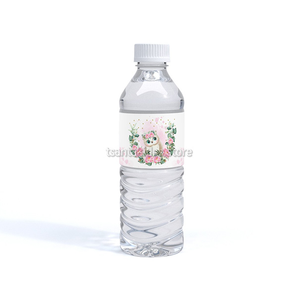 Κουκουβάγια με Λουλούδια Βάπτιση Κορίτσι – DIY Ετικέτα για Μπουκάλι Νερού
