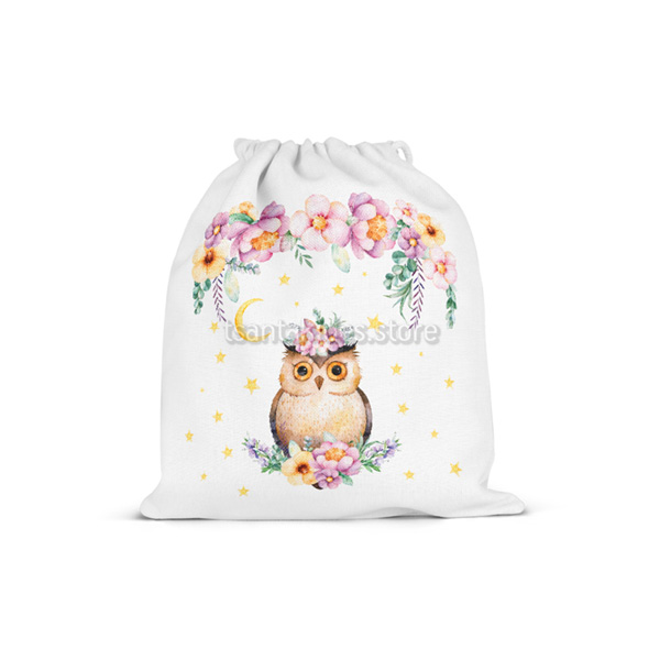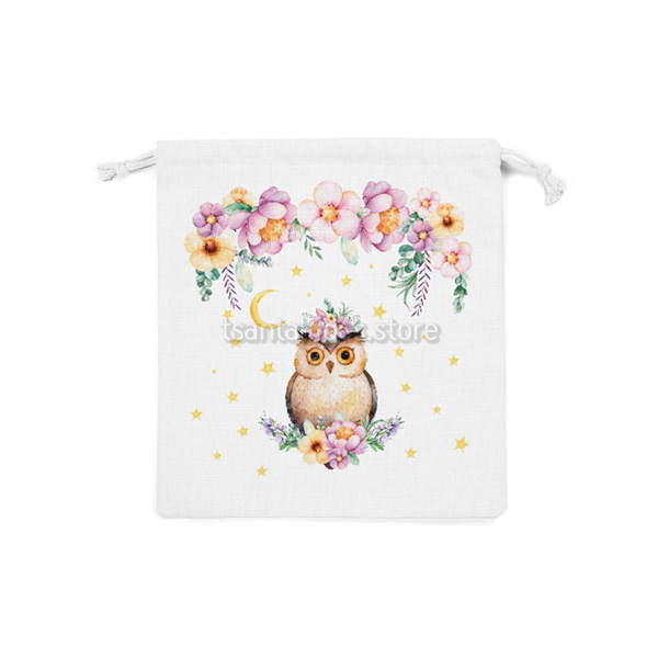 Υφασμάτινο πουγκί δώρου για κορίτσι με εκτυπωμένο με θέμα την κουκουβάγια.