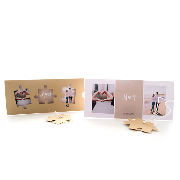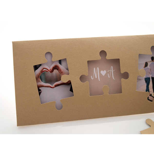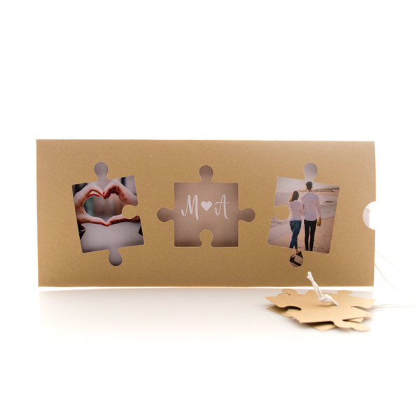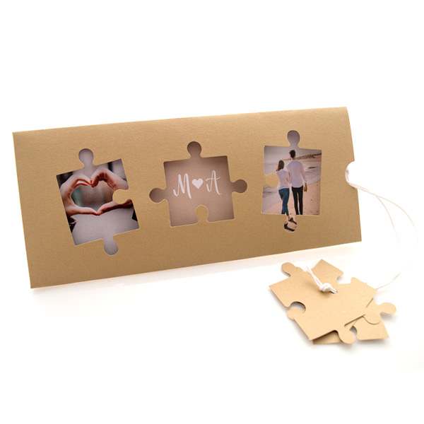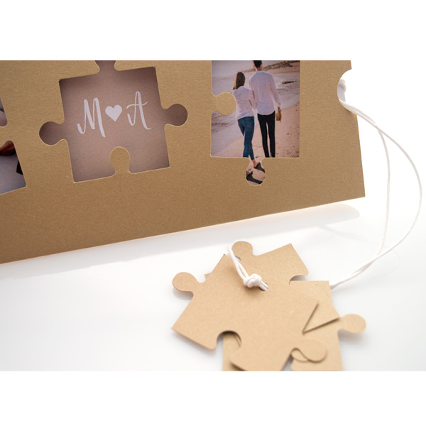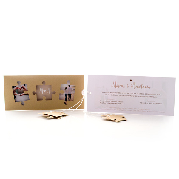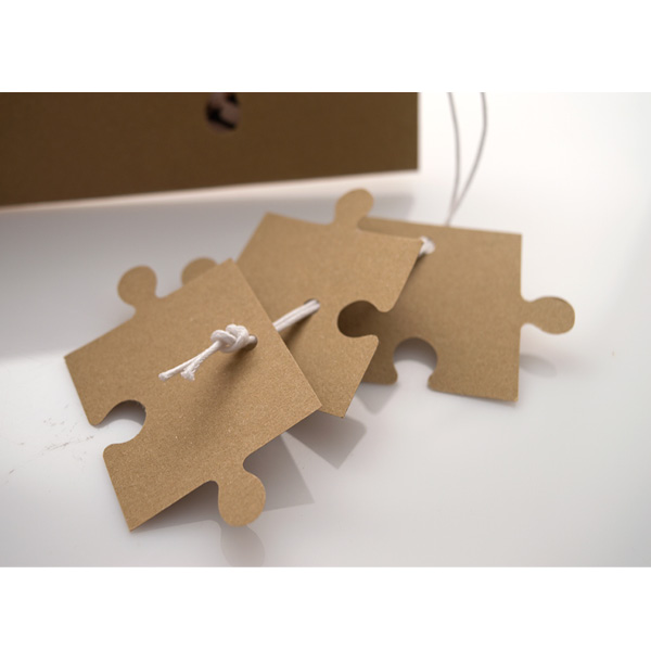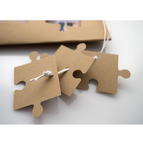 - Αξεσουάρ: κορδόνι κερωμένο λευκό με καρτάκι σε σχήμα puzzle (3 τεμάχια) για όνομα προσκεκλημένων