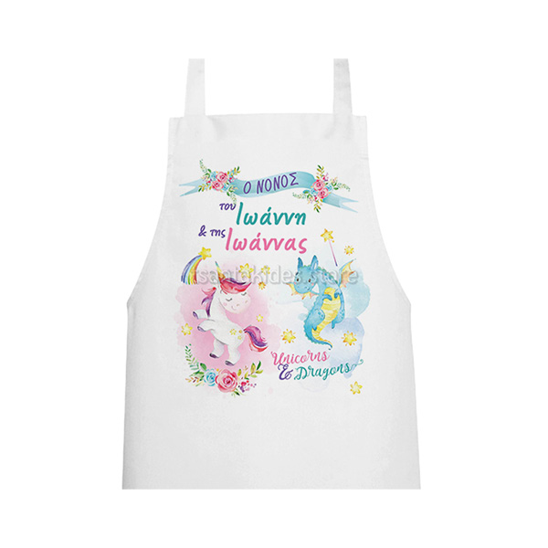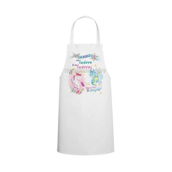 Ποδιά Νονού / Νονάς εκτυπωμένη με θέμα το Μονόκερος και Δράκος.