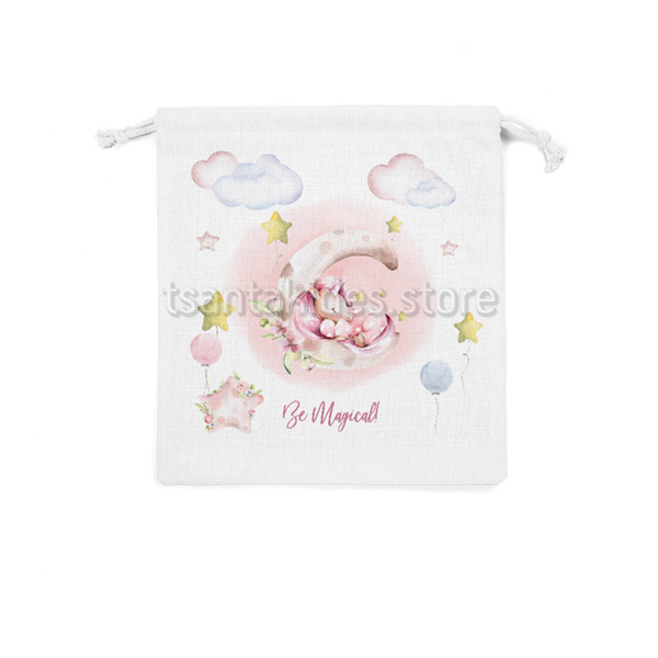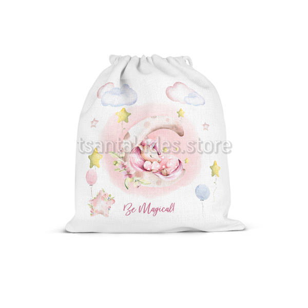 Μονόκερος στο Φεγγάρι Βάπτιση Κορίτσι – Πουγκί Υφασμάτινο με Κορδόνι