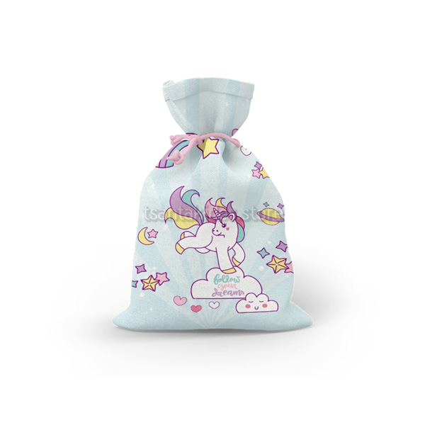 Mπομπονιέρα σε υφασμάτινο πουγκί με θεματική Μονόκερος.