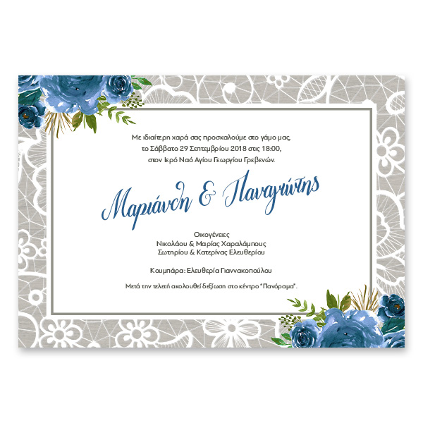 Μοντέρνα Πρόσκληση Γάμου με Μπλε Άνθη