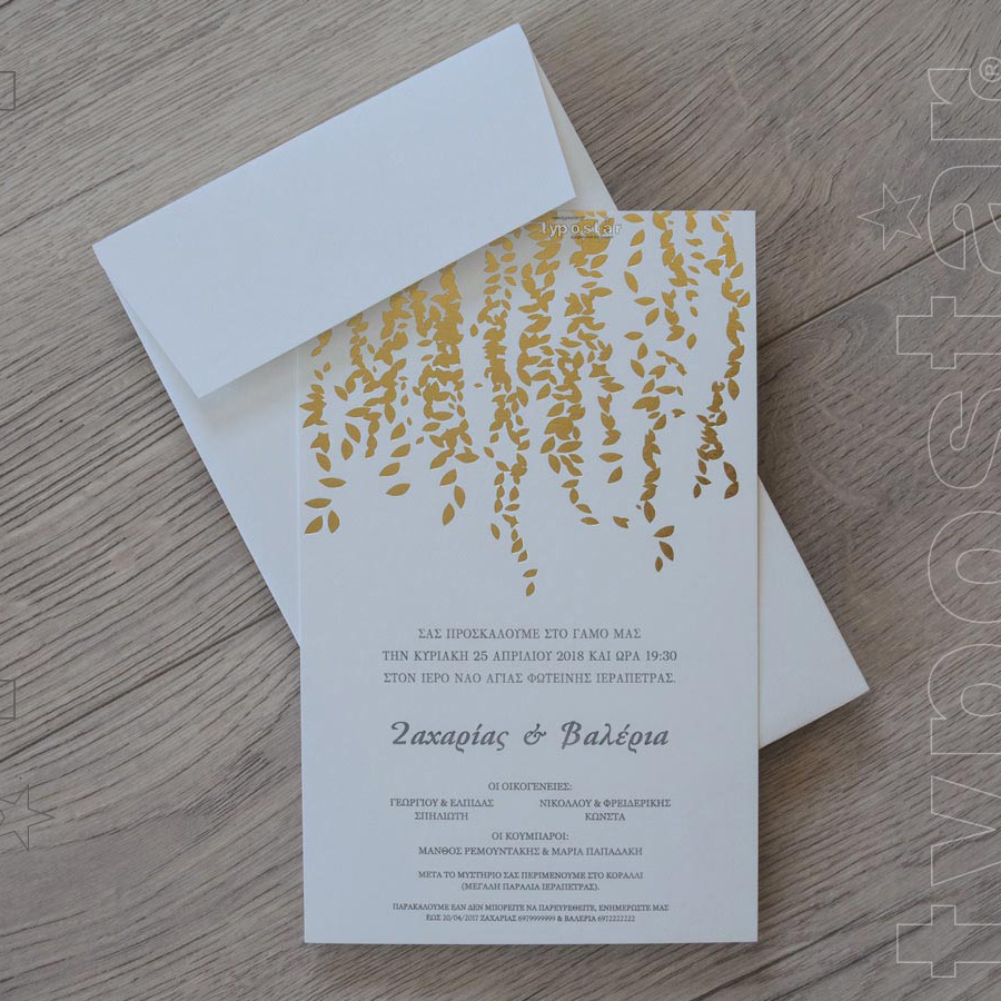 Μοντέρνο Προσκλητήριο Γάμου με Χρυσά Φύλλα