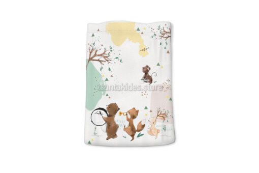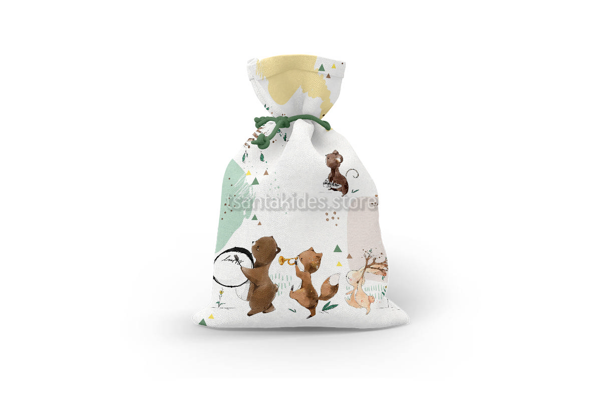 Mπομπονιέρα σε Υφασμάτινο πουγκί με Θεματική το Ζώα στο Δάσος.