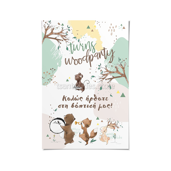 Πάρτυ με Ζωάκια στο Δάσος Βάπτιση Δίδυμα – Καρτολίνο για καβαλέτο