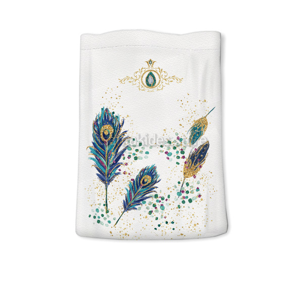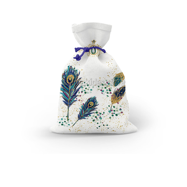 Mπομπονιέρα σε Υφασμάτινο πουγκί εκτυπωμένο με θέμα το Παγώνι.