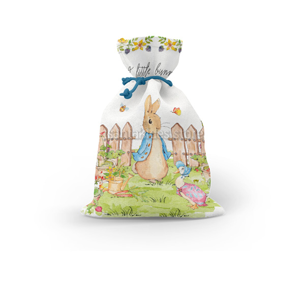 Mπομπονιέρα σε Υφασμάτινο πουγκί εκτυπωμένο με θέμα το Κουνελάκι.
