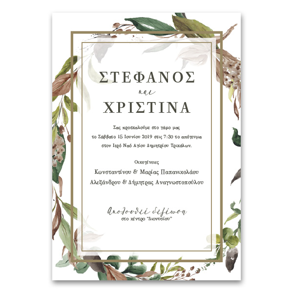 Πρόσκληση Floral με Κλαδιά και Φύλλα