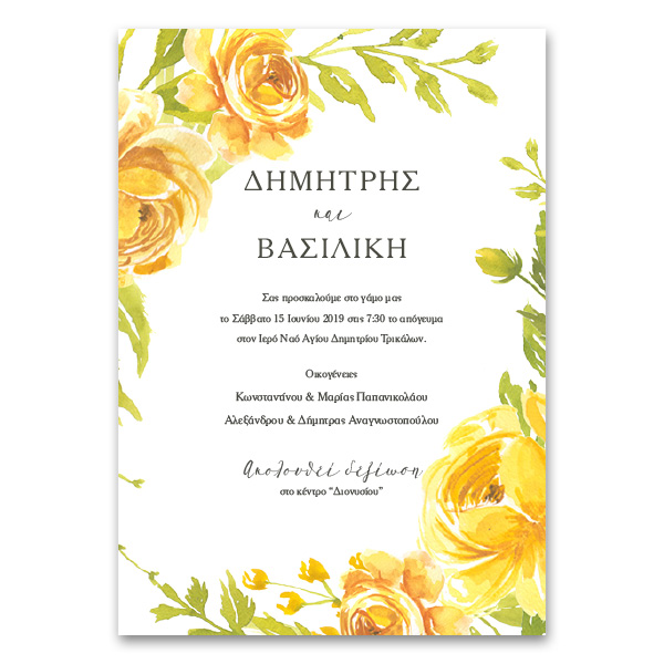 Πρόσκληση Γάμου με Κίτρινα Τριαντάφυλλα