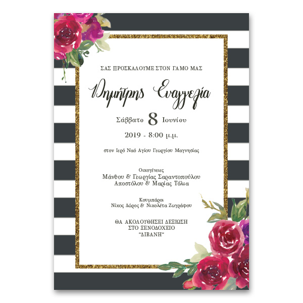 Από την floral συλλογή προσκλητηρίων, ένα ξεχωριστό μοναδικό σχέδιο. Τυπωμένο σε χαρτί άριστης ποιότητας και περιλαμβάνει ταιριαστό φάκελο.