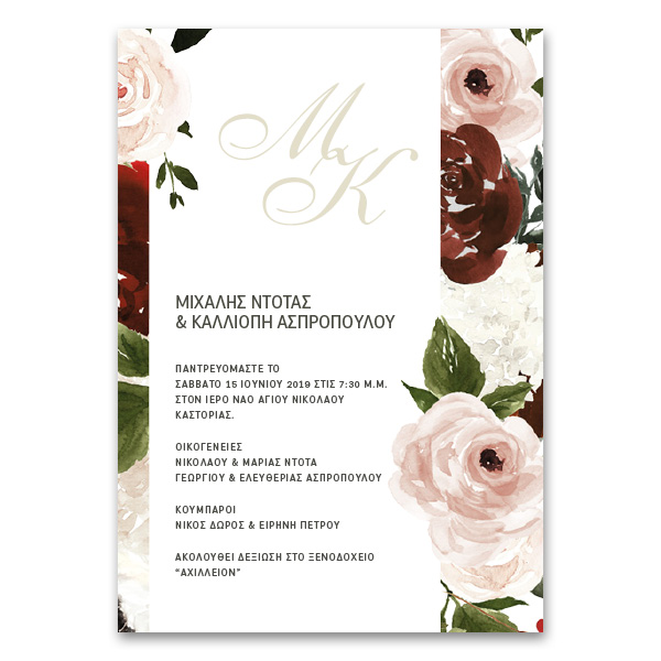 Πρόσκληση με Μονογράμματα και Τριαντάφυλλα Κλασική