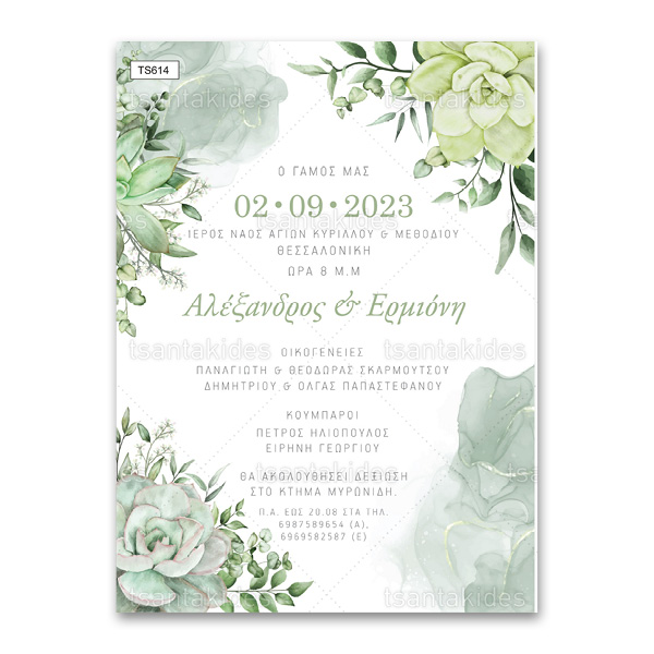Προσκλητήριο Γάμου floral από παχύφυτα και ευκάλυπτο