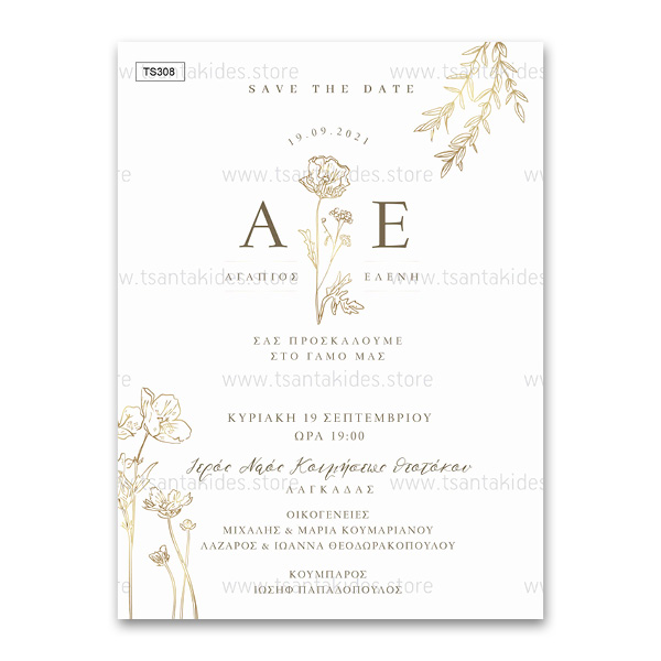 Προσκλητήριο Γάμου λιτό με χρυσές λεπτομέρειες