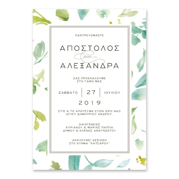 Προσκλητήριο Γάμου με Πράσινα Φύλλα