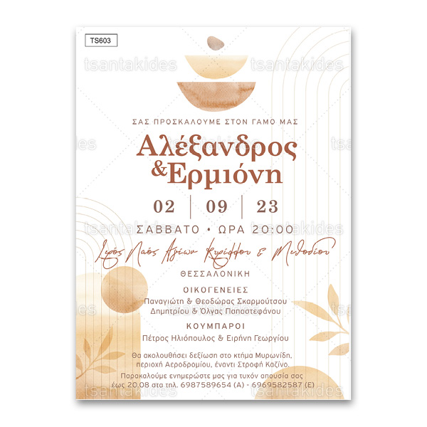 Προσκλητήριο Γάμου σε abstract ύφος με γήινες αποχρώσεις
