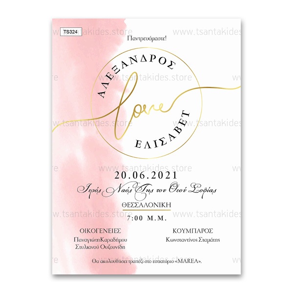Προσκλητήριο γάμου σε ροζ pastel χρωματισμούς. Το προσκλητήριο διατίθεται σε κάρτα με φάκελο σε χρώμα της επιλογής σας από τους αναγραφόμενους κωδικούς.