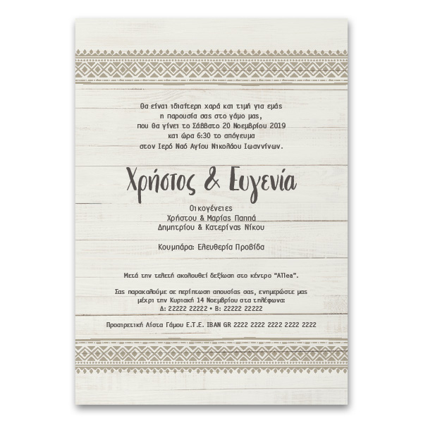 Προσκλητήριο Γάμου Σύγχρονο Rustic Κάθετο