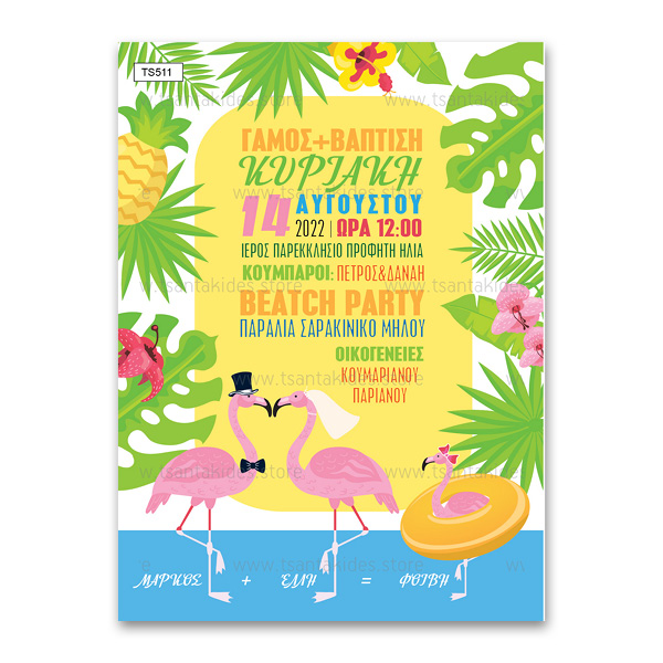Προσκλητήριο Γάμου – Βάπτισης Flamingo Summer Story